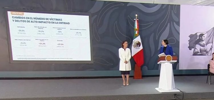 La secretaria afirmó que todos los demás delitos de alto impacto han ido a la baja, como los feminicidios con 15.2% menos casos, el secuestro extorsivo con una reducción del 11.3% y robo a transeúnte con violencia con 15.9%.